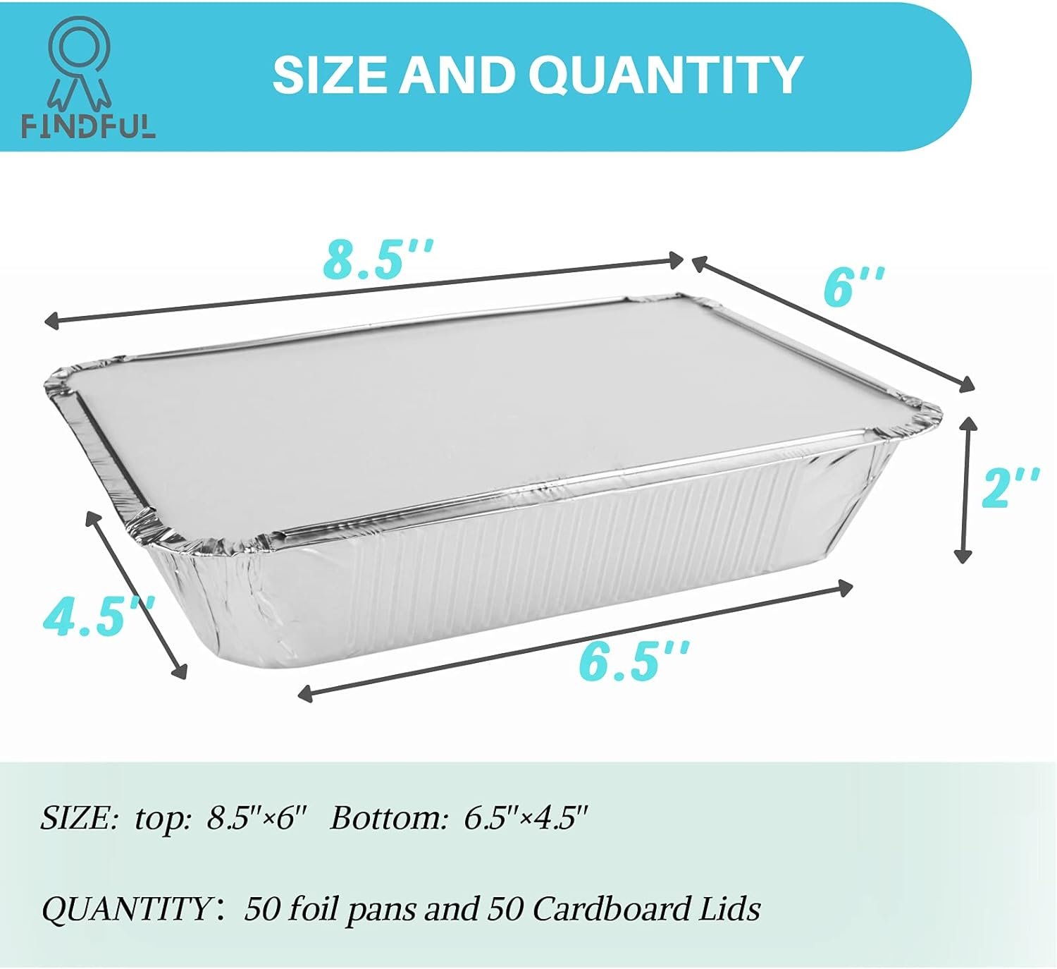 Logo Personalizzato Teglie in Alluminio con Coperchi dal Fornitore (Confezione 50 Teglie + 50 Coperture Cartone 8.5"×6" Capacità 2.25 LB) Contenitori Monouso per Infornatura Preparazione Pasti Congelatore Asporto Marchio Bianco