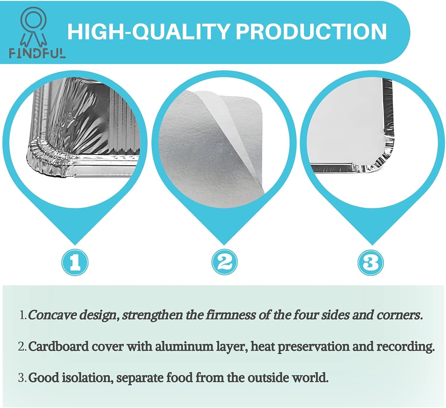 Logo Personalizzato Teglie in Alluminio con Coperchi dal Fornitore (Confezione 50 Teglie + 50 Coperture Cartone 8.5″×6″ Capacità 2.25 LB) Contenitori Monouso per Infornatura Preparazione Pasti Congelatore Asporto Marchio Bianco